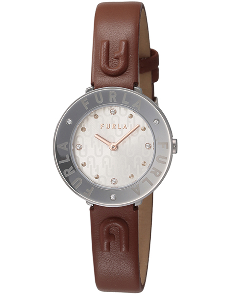 フルラのアイデンティティであるブロックロゴとアーチロゴを随所にデザインした腕時計です。クリスタルガラスを配置したエレガントなダイヤルにカジュアルなレザーベルトを合わせ、シーンを選ばずに着用できるコレクションです。