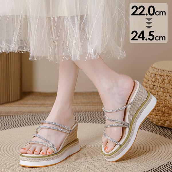 厚底ミュール ウェッジヒール キラキラ 可愛い 厚底 ミュール ヒール9cm レディース サンダル ベージュ ウェッジヒールサンダル かかとなし 普段履き サマー 夏 カジュアル かわいい ゴージャス リゾート 海 プール 旅行 コンフォートサンダル シューズ 小さいサイズ 22.0/22.5/23.0/23.5/24.0/24.5 di250g5g5l9