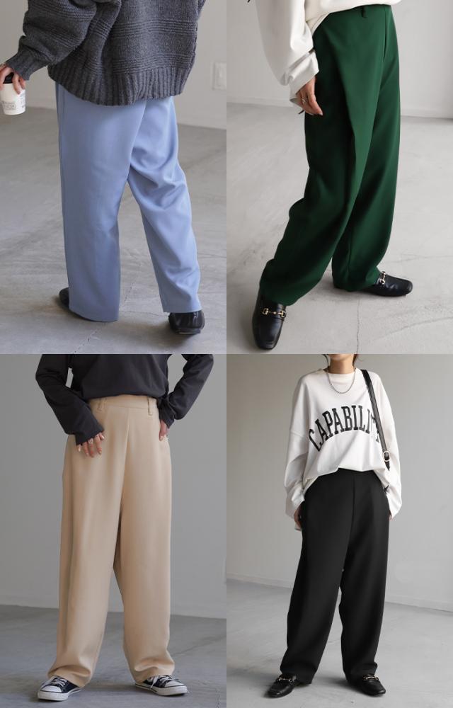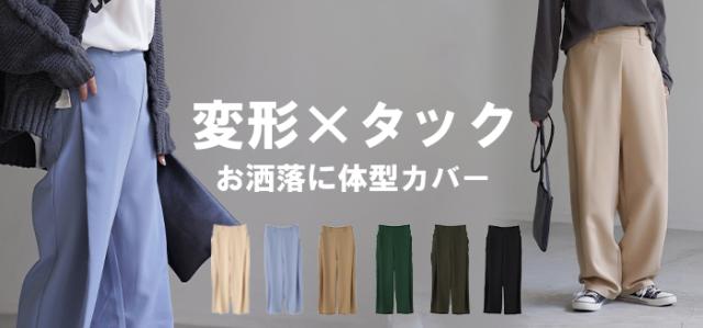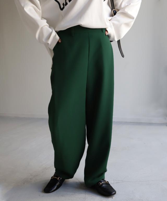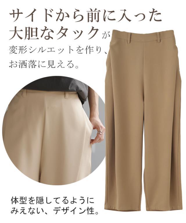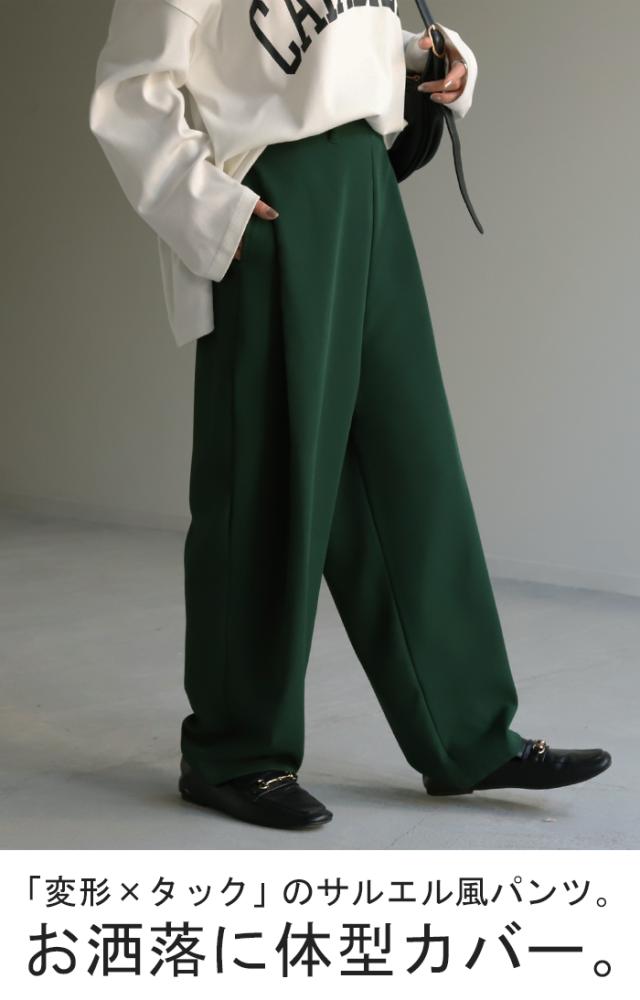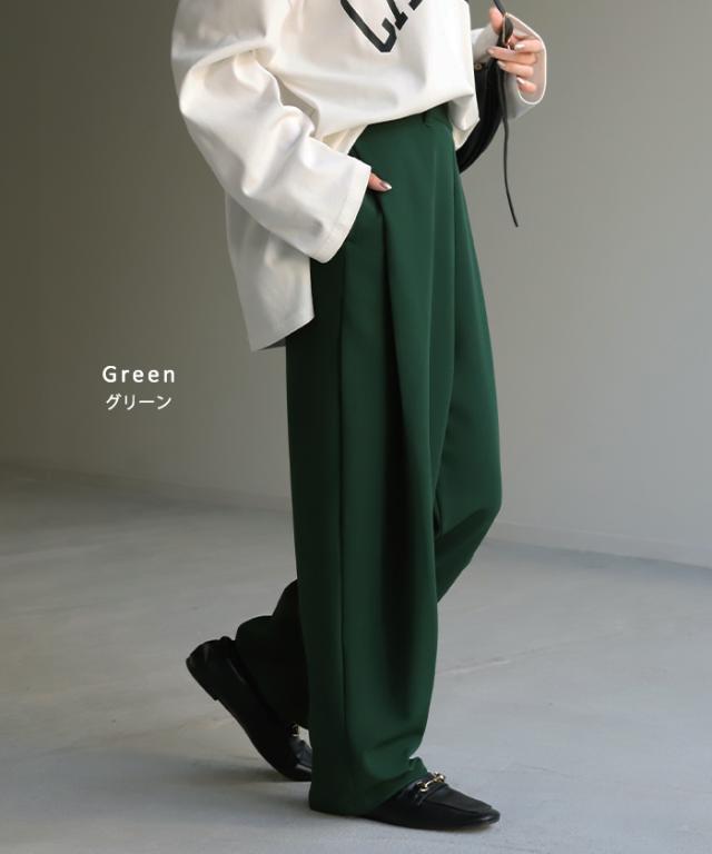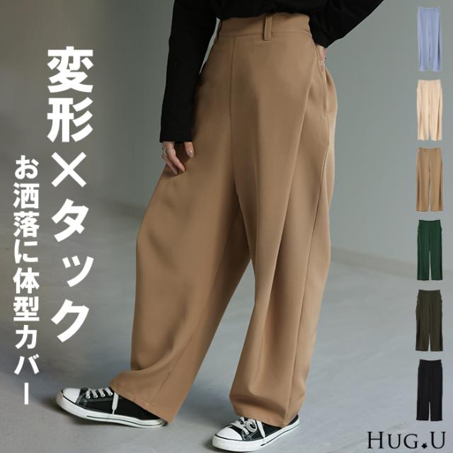 センス良。「 変形タック 」 パンツ タックパンツ レディース タック ワイドパンツ ワイド ロング 大きいサイズ ボトム 体型カバー ボトムス ズボン ハイウエスト オフィス スラックス レディースパンツ 長 ズボン グリーン 黒 きれいめ 冬 秋 HUG.U 秋新作