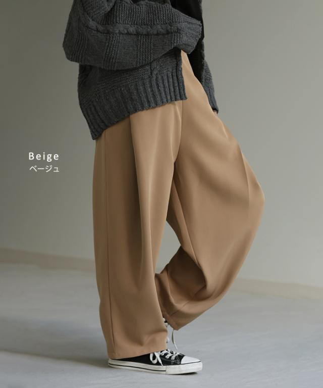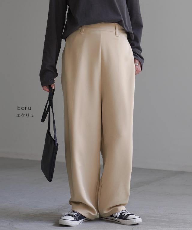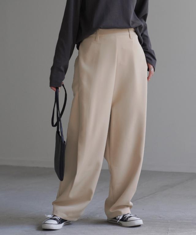 ウエスト外側から、裾にかけて大胆に入れたタックで立体感のあるシルエットに。