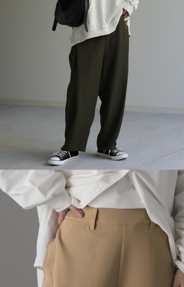 トレンドに左右されない計算された美シルエットテーパードパンツです。