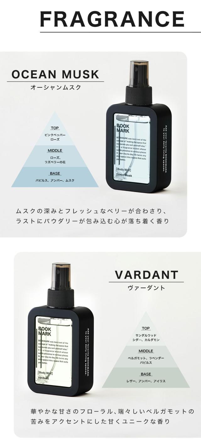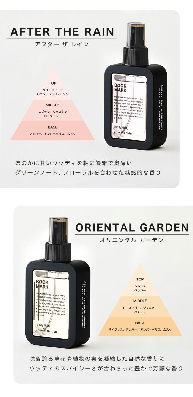 BOOKMARK ブックマーク ボディミスト フレグランス MUSK VERDANT RAIN ORIENTAL GARDEN おしゃれ コンパクト シンプル デザイン 保湿 母の日 ギフト 父の日