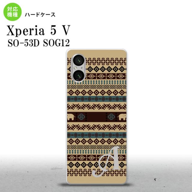 Xperia 5V Xperia 5V スマホケース 背面ケース ハードケース エスニック ゾウ ベージュ ブルー +アルファベット 2023年 10月発売 nk-xp55-1572i