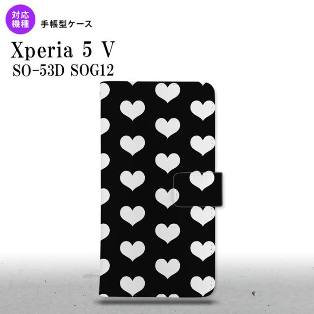 Xperia 5V Xperia 5V 手帳型スマホケース カバー ハート 黒 白