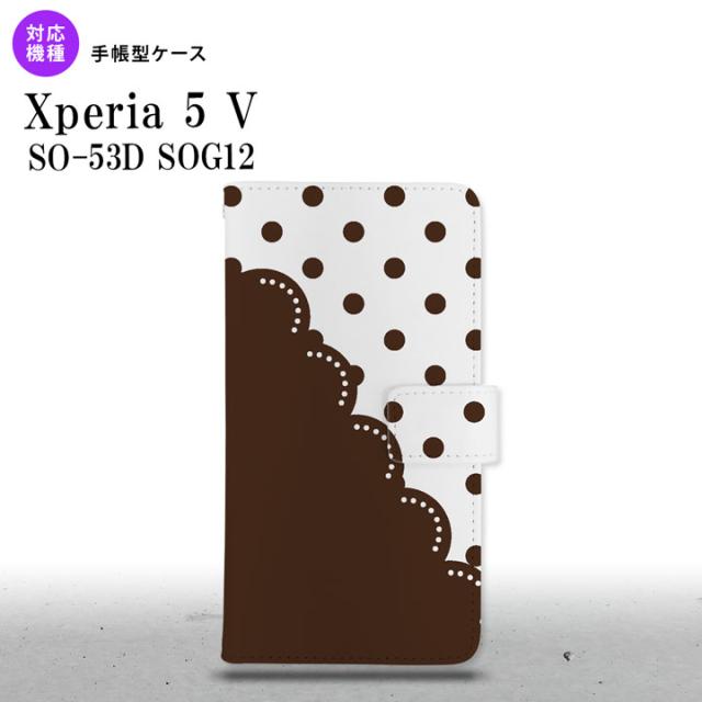 Xperia 5V Xperia 5V 手帳型スマホケース カバー ドット レース 茶