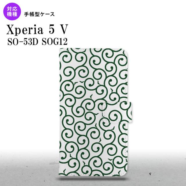 Xperia 5V Xperia 5V 手帳型スマホケース カバー 唐草 クリア 緑