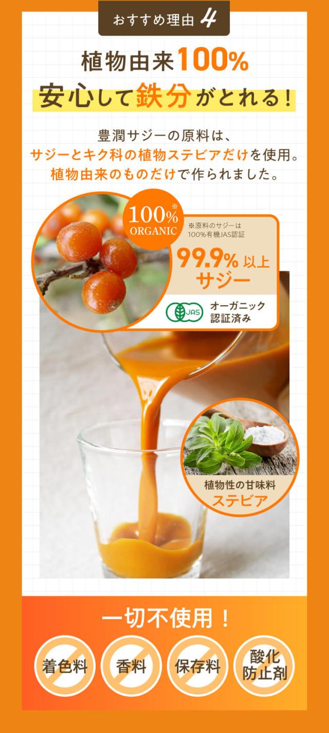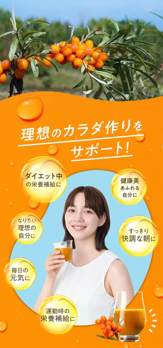 | 原材料 | サジーピューレ(中国(内モンゴル自治区)製造)、甘味料(ステビア) |
