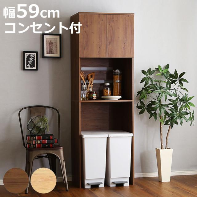 ごみ箱上ラック 幅59cm 木製 スリムタイプ ヴィンテージ調 ( ごみ箱上 ラック 棚 ゴミ箱上収納 収納 ダストボックス スリム 食器棚 キッチン収納 台所 キッチン家具 シンプル 可動棚 コンセント付 )