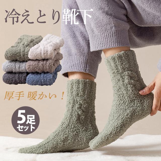 靴下 ソックス 5足セット メンズ ルームソックス 蒸れない 単色 厚手 暖かい 多色 通気性 防臭 無地 裏起毛 もこもこ 抗菌