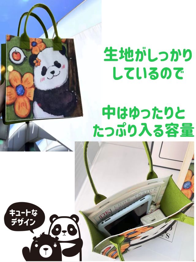 トートバッグ ハンドバッグ パンダデザイン パンダ柄 選べる2カラー A4 通勤 通学 マルシェバッグ 手提げ 軽量 おしゃれ かわいい ママ パンダ サブバッグ レディース ギフト袋 ギフト プレゼント