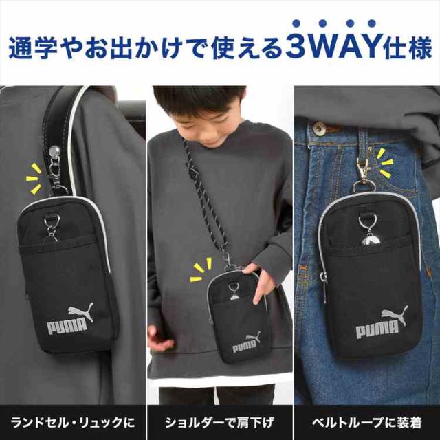 ポーチ ランドセル PUMA プーマ キッズ 子供 男の子 3way リール付き 撥水 ショルダーポーチ スマホポーチ スマホショルダー ショルダーバッグ パスケース キーケース ポシェット ティッシュ ハンカチ 携帯 収納 ベルトループ 取り付け マルチスタイルポーチ 小学生 中学生