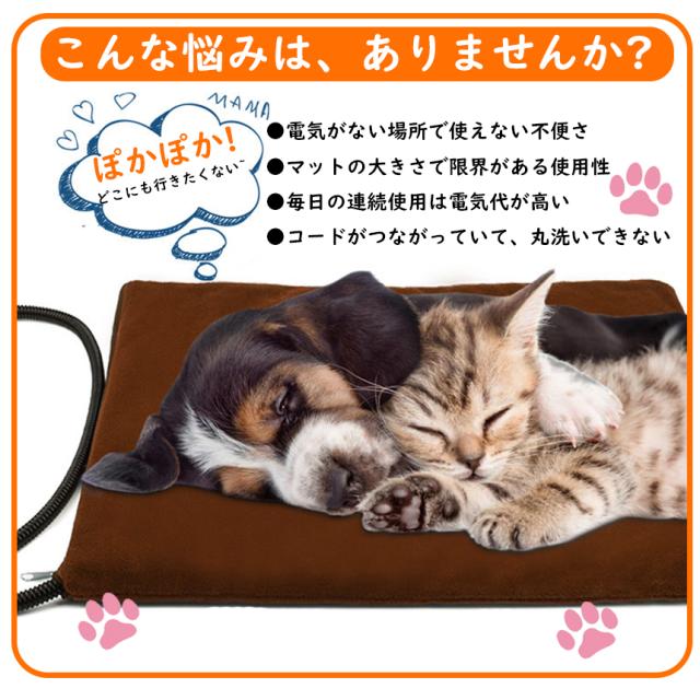 一時間の電気代は約15ワットです(約0.3円/1時間)。省エネで、長い時間につけっぱなしでも大丈夫です。ご安心に使用ください。温度センサー付きのため、カーペットの温度を均一に上げることができます。柔らかく快適なペット専用ホットマットで、ペットたちもポカポカに冬を過ごせます。0度より低くな