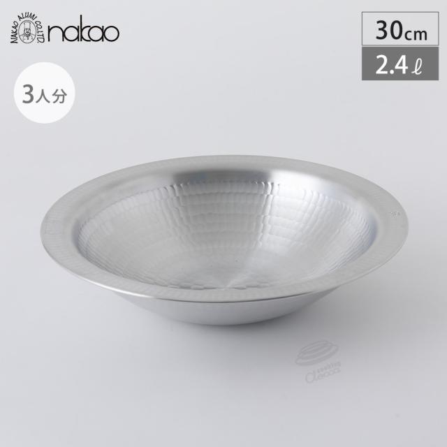 アルミ 打ち出し うどんすき鍋 30cm 2.4L 中尾アルミ製作所 三人前 ガス火専用 N-26 【 卓上鍋 3人用 浅型 中尾アルミ 打出 鍋 業務用 取っ手なし 直火 軽量 日本製 】