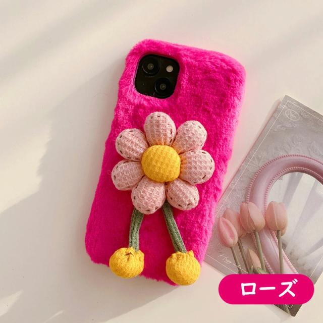 ※ もこもこでふわふわ3d花、超面白いし、目立つ! カワイイ! 面白い! 思わず目を引く「ぬいぐるみ スマホケース」。