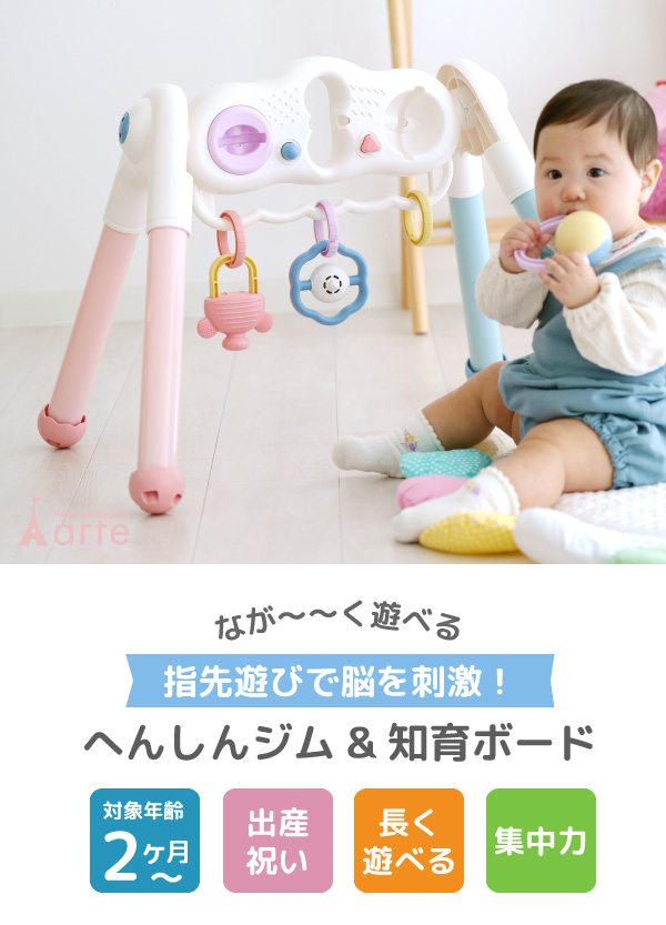 お誕生からはベビージムとして、1才頃からは知育ボードとして、簡単へんしんで長く遊べます。