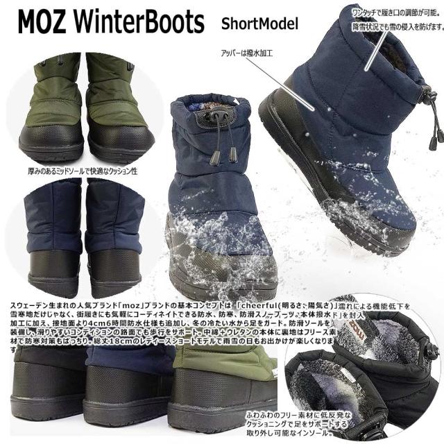 モズ 防水 スノーブーツ レディース moz7000 ショートブーツ ウィンターブーツ 防寒 防滑 撥水加工 雪国 moz