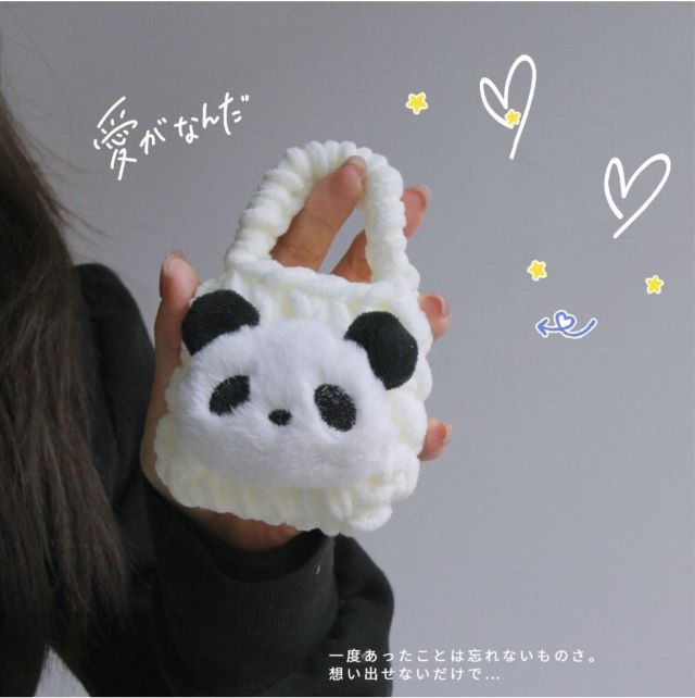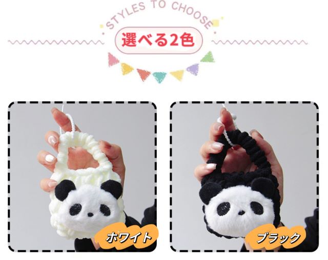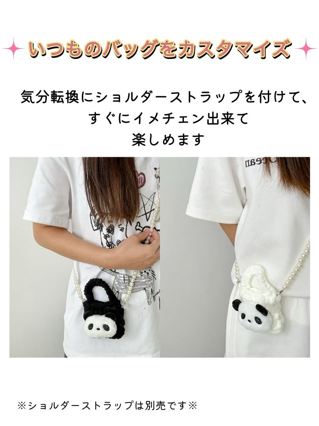 ※ニット生地のかわいいパンダミニポーチ♪バッグにつけられるストラップ付きなので、必要な時にさっと取り出せてとっても便利です。