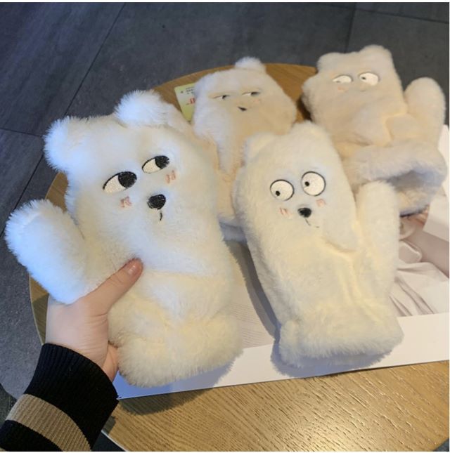 くまグローブ 手袋 ひも付き あったか可愛いボア素材 もこもこ ぬいぐるみ クマ レディース 女性 キッズ グローブ 暖かい 可愛い ふわもこ アニマル 防寒 秋冬用 保温 アウトドア 通学用 通勤 おしゃれ キュートM Lサイズ 大人サイズ ギフト プレゼント