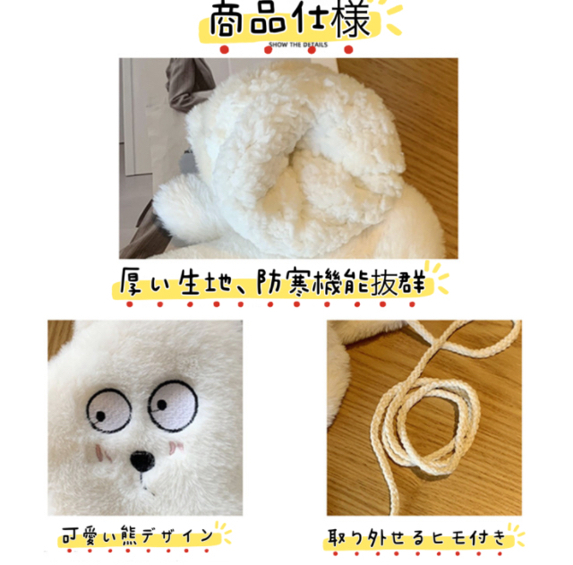 ※ぬいぐるみのように可愛いクマちゃんの顔がデザインされ、これからの寒い季節には欠かせないです。