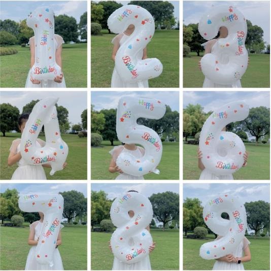 ナンバーバルーン 大きい 数字 風船 白 誕生日 飾り付け かわいい 英文字 星 イラスト 成人式 膨らませ方 使い回し 壁 年齢 送料無料