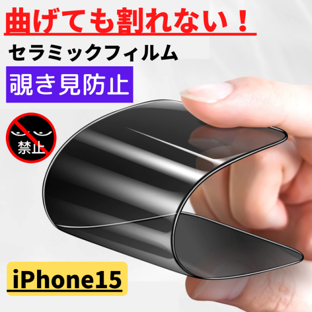 iPhone 15 セラミック 覗き見防止 フィルム 割れない 保護フィルム 指紋防止 硬度9H 耐衝撃 光沢 全面保護 フルカバー アイフォン のぞき見防止 iphone iPhone15 アイフォン15