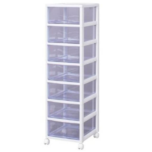 ●引き出しの材質にスチロールを採用しているため透明度が高く、中身が確認しやすいクリアタイプのチェ ストです。
