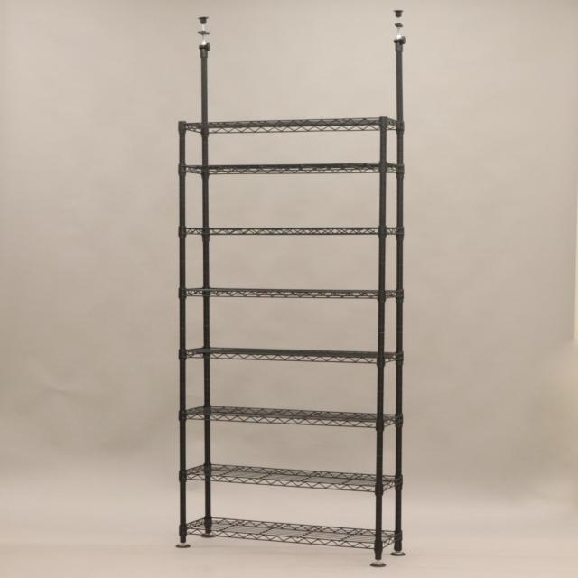 重厚感のあるマットブラック 突っ張り支柱付きスチールラック