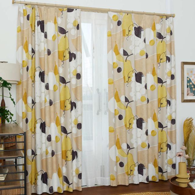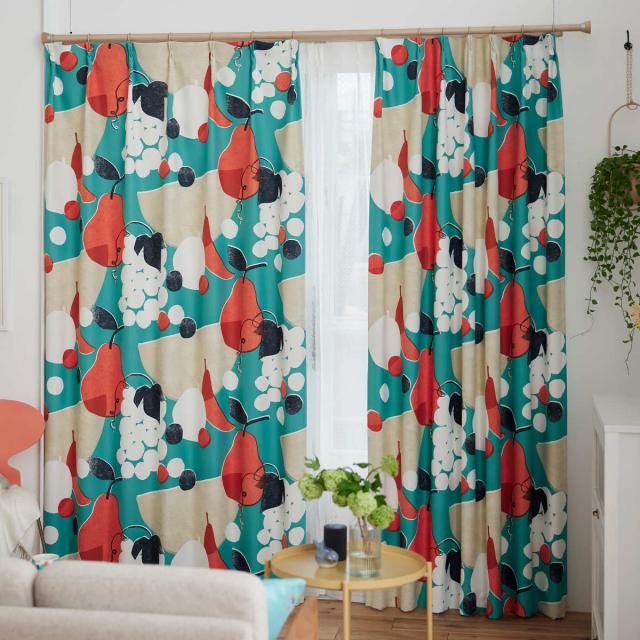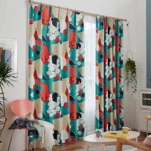 レトロポスターのアナログ感が懐かしいフルーツ柄のドレープカーテンです。遮光・形状記憶加工・ウォッシャブル仕様など機能性にも優れており、リビングやダイニング、寝室など様々なお部屋でご使用いただけます。デザイン性、機能性共に抜群なので、インテリアにこだわりたい方にもぴったりです。