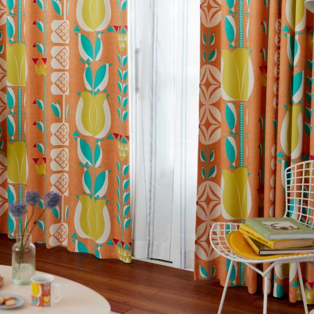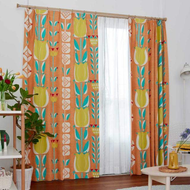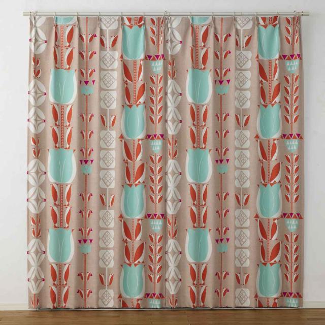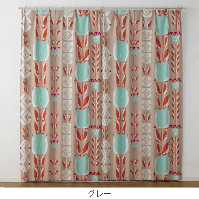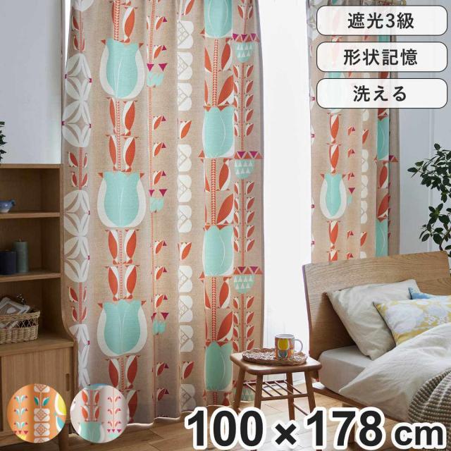 カーテン 遮光3級 チューリッペン 100×178cm 1枚入り スミノエ ドレープカーテン ( ドレープ 1枚 3級遮光 遮光 既製品 チューリップ 柄 ウォッシャブル インテリア レトロ 花柄 1.5倍ヒダ 日本製 )