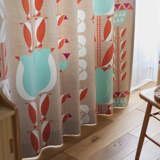レトロな花柄にアシンメトリーな要素と遊び心を取り入れたデザインのドレープカーテンです。遮光・形状記憶加工・ウォッシャブル仕様など機能性にも優れており、リビングやダイニング、寝室など様々なお部屋でご使用いただけます。デザイン性、機能性共に抜群なので、インテリアにこだわりたい方にもぴったりです。