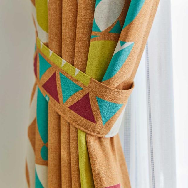 カーテンと同生地のタッセルが付属しています。※タッセルのデザインは1枚ごとに異なります。