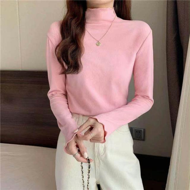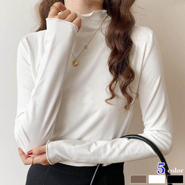 メロー トップス ハイネック カットソー 長袖 袖長め 5色 レディース きれいめ タートルネック モックネック オフネック Tシャツ ロンT インナー 春 秋 冬 薄手 シンプル かわいい おしゃれ オフィス カジュアル 無地 重ね着 きれいめ