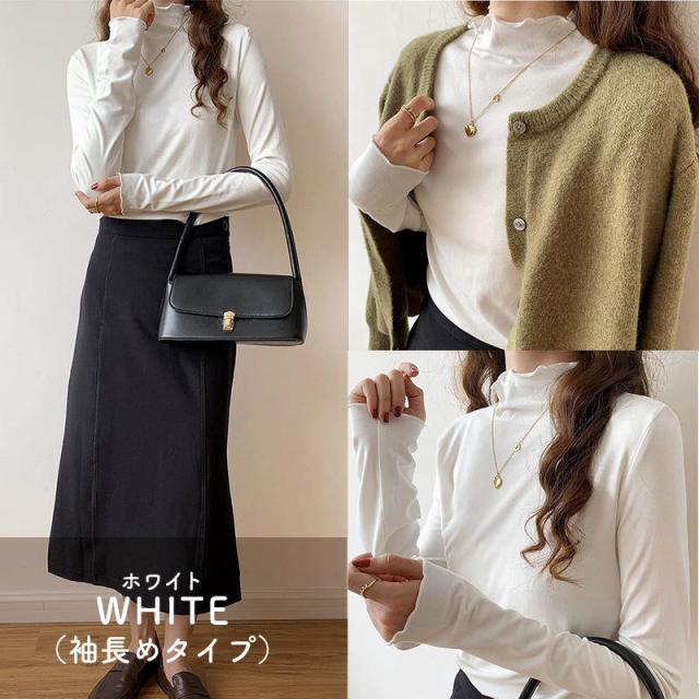 メロー トップス ハイネック カットソー 長袖 袖長め 5色 レディース きれいめ タートルネック モックネック オフネック Tシャツ ロンT インナー 春 秋 冬 薄手