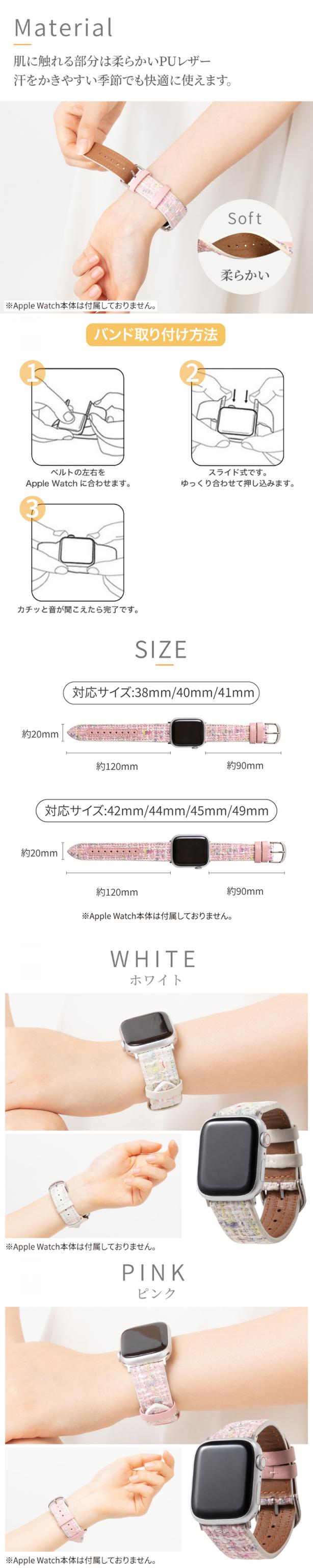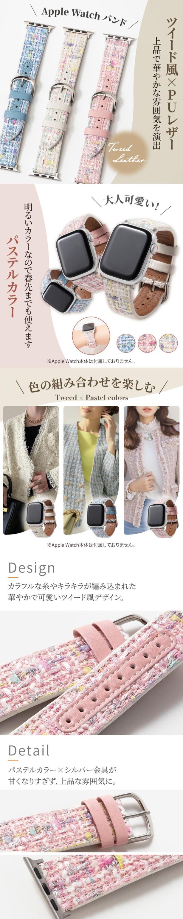 AppleWatch PUレザー バンド 交換バンド ツイード風 アップルウォッチバンド アップルウオッチ おしゃれ かわいい 伸縮性 軽い 通気性 アジャスター調整 レディース メンズ プレゼント appleウォッチ