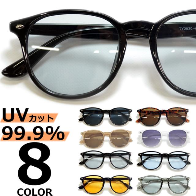 サングラス 伊達メガネ メンズ レディース ウエリントン ボストン ラウンド 丸メガネ ボスリントン ライトカラーレンズ 薄い色 ブラック ブラウン ベージュ ホワイト グレー スモーク ブルー オレンジ 全8色