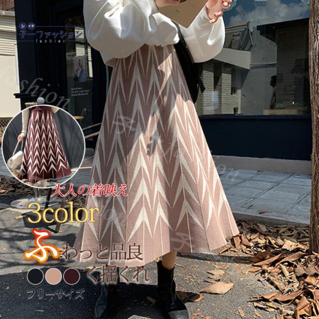 ロングスカート 春新作 新作 マキシスカート レディース 秋冬 ニット 無地 あったか シンプル カジュアル ゆったり 細見え きれいめ ハイウエスト 脚長 Aライン 体型カバー オフィス 学生 おしゃれ 大人 可愛い 通勤 通学 秋服 バレンタイン