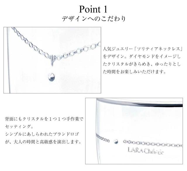 LARA Christie屈指の人気ダイヤモンドジュエリー「ソリティアネックレス」をイメージし、 キラキラと輝くクリスタルを各2石ずつセッティングいたしました。