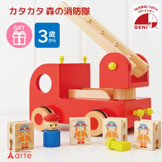 木のおもちゃ 男の子 3歳 2歳 消防車 女の子 車 ごっこ遊び 木製 玩具 孫 知育玩具 子供 キッズ ベビー 幼児 安全 誕生日 クリスマス 子供の日