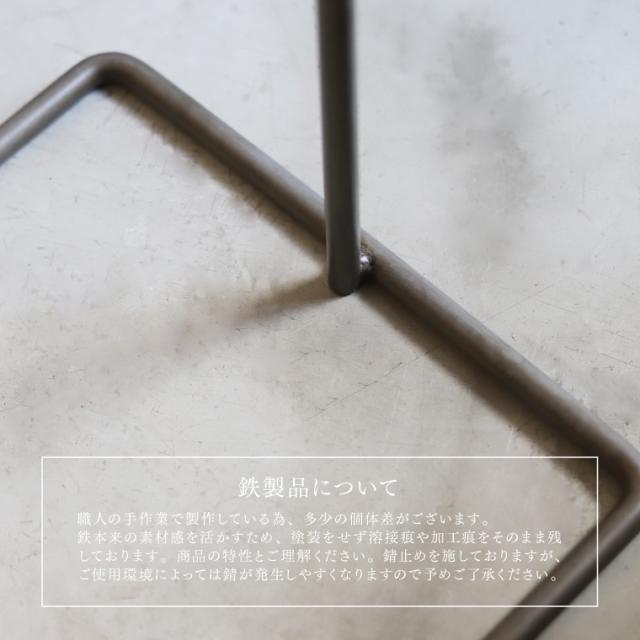 | 注意事項 | 【鉄製品について】 職人の手作業で製作している為、多少の個体差がございます。 また、鉄本来の素材感を活かすため、塗装をせず溶接痕や加工痕をそのまま残しております。商品の特性とご理解ください。 錆止めを施しておりますが、ご使用環境によっては錆が発生しやすくなりますので予めご了承ください。 ※上記理由での返品、交換はお受けできかねます。 |