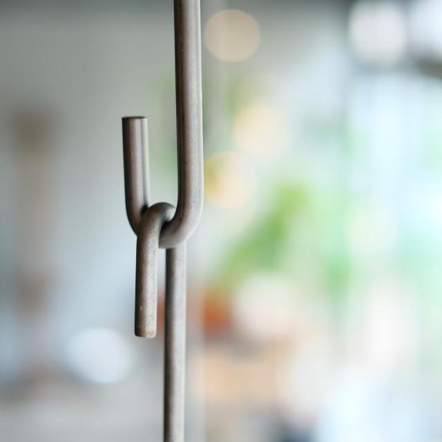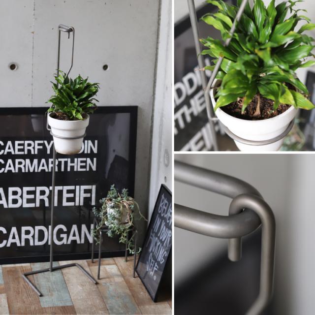 無骨でシンプルなデザインが植物のもつ美しさを引き立てる、鉄製のプラントハンガー。