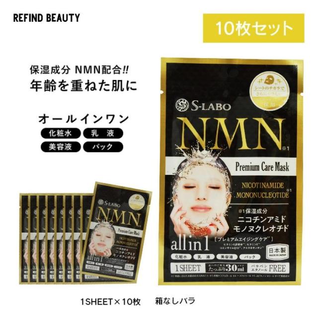 個包装 10シート【S-LABO NMN プレミアムケアマスク】フェイスマスク シートマスク 潤い ケア 1P 10枚セット 日本製 パック マスク 時短 ニコチンアミドモノヌクレオチド オールインワン