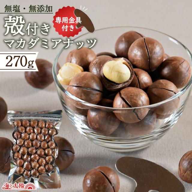 開けたての香ばしさ!<殻付きマカダミアナッツ270g+割り金具付> ロースト 無塩 無添加 からつき 贅沢 おやつ おつまみ 家飲み 製菓材料 送料無料 メール便 チャック袋 海と太陽 クーポン消化 ポイント消化 殻割り クリスマス 年末年始