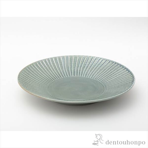 「送料無料」 彫刻紋〈藍墨〉 24cm皿 草林彫 ( 退職祝い 定年 盛皿 プレート テーブルウェア 食器 パーティー 波佐見焼 結婚 )