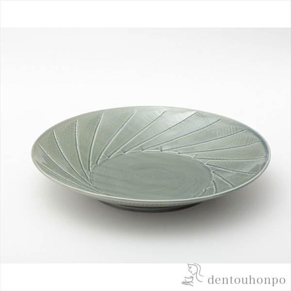 「送料無料」 彫刻紋〈藍墨〉 24cm皿 斜め彫 ( 退職祝い 定年 盛皿 プレート テーブルウェア 食器 パーティー 波佐見焼 結婚 )