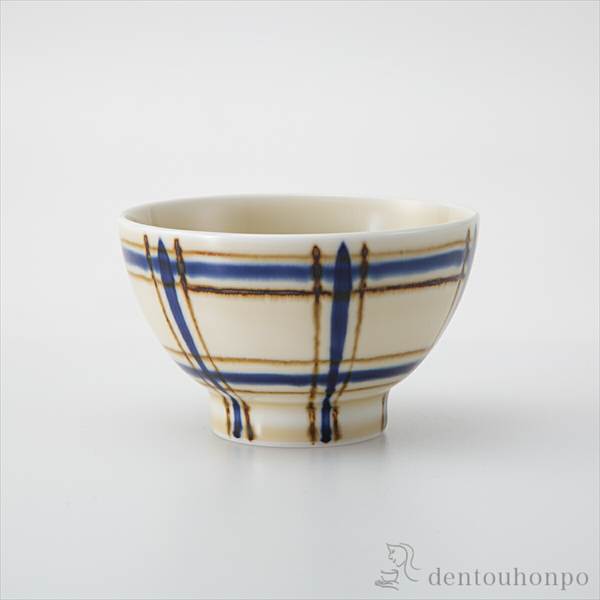 「送料無料」 色格子 茶碗 青 3個セット ( 退職祝い 定年 ごはん 白ご飯 お茶碗 飯碗 おすすめ 波佐見焼 結婚 出産 内祝い 引き出物 )