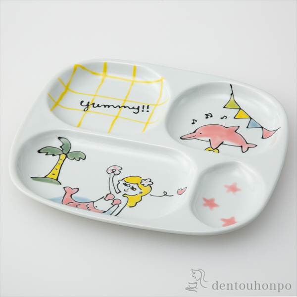 「送料無料」 MOGUMOGU プレート 人魚姫 ( 退職祝い 定年 お子様用 離乳食 ベビー 食器 キッズ 波佐見焼 結婚 出産 内祝い )