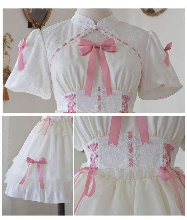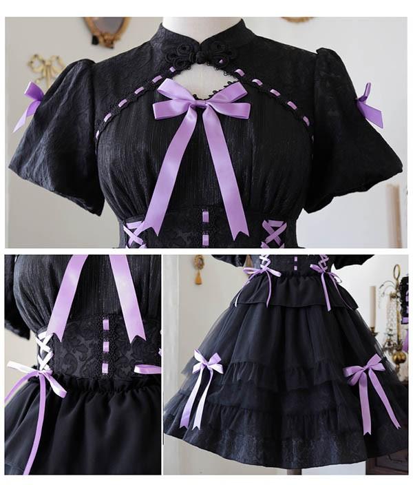 ロリータワンピース ゴスロリ クラロリ 黒 ブラック ホワイト 白 レディース lolita レースアップ リボン ロリータ 半袖付き 膝丈 小柄 可愛い 着?せ 仮装 コスプレ コスチューム 小柄 可愛い 学生 通学 通勤 着?せ 女の子 dd155x1x1zr