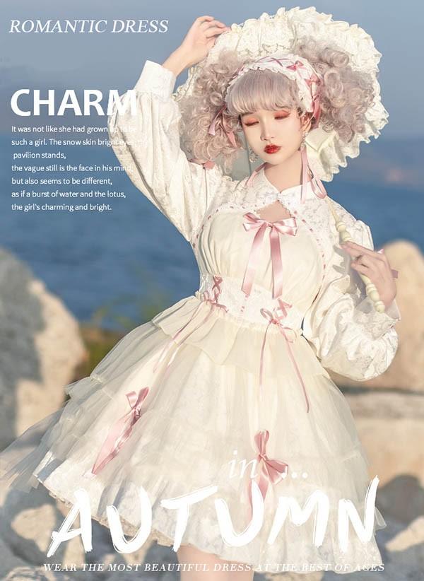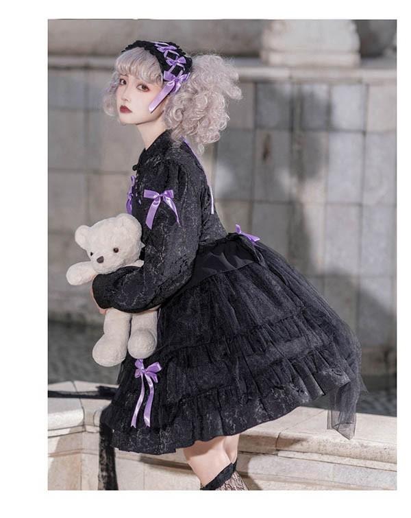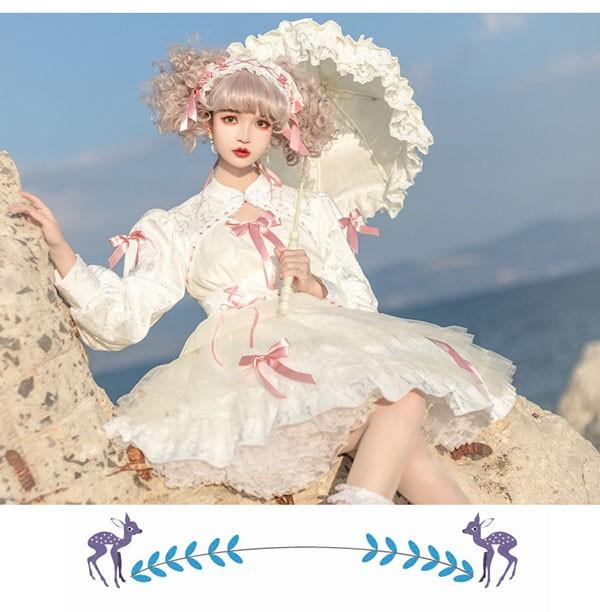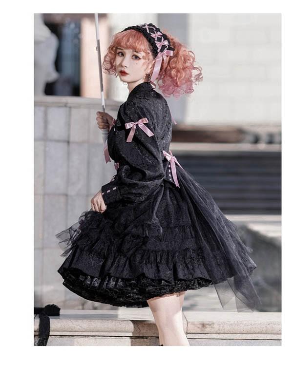 ロリータワンピース ゴスロリ クラロリ 黒 ブラック ホワイト 白 レディース lolita レースアップ リボン ロリータ 長袖付き 膝丈 小柄 可愛い 着?せ 仮装 コスプレ コスチューム 小柄 可愛い 学生 通学 通勤 着?せ 女の子 dd154x1x1zr