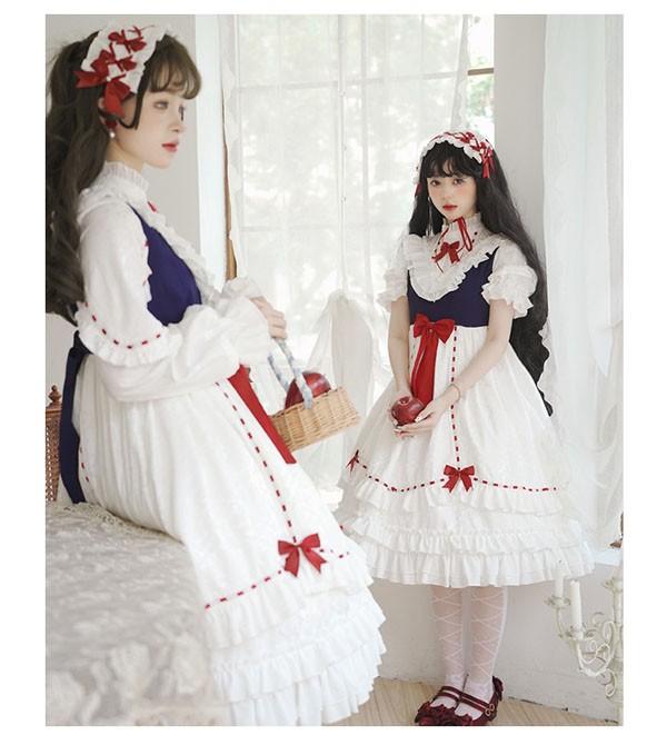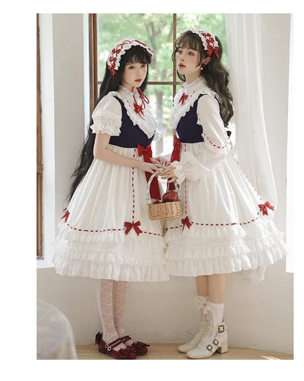 ロリータワンピース クラロリ ホワイト 白 レディース lolita リボン ロリータ 長袖付き 半袖あり 膝丈 小柄 可愛い 着?せ 仮装 コスプレ コスチューム 小柄 可愛い 学生 通学 通勤 着?せ 女の子 ゴスロリ dd153x1x1zr
