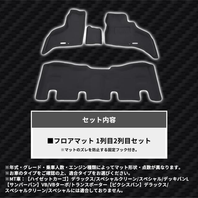 イレブンインターナショナル Clazzio(クラッツィオ) 立体フロアマット 1列目+2列目セット アトレー/ハイゼットカーゴ/ピクシスバン/サンバーバン 700系 NEWラバータイプ ブラック ED-6606